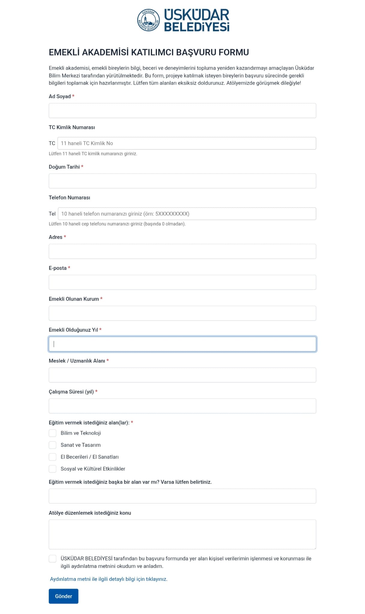 Başvuru yapmak isteyenlerin aşağıdaki formu doldurması yeterlidir:
